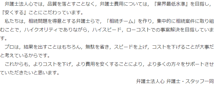 トップその他費用の安さにこだわる理由 階層構造▼ その他(目次) 費用の安さにこだわる理由 その他(目次)その他トップ共通バナー※消さない心グループニュース相続放棄の電話相談・テレビ電話相談弁護士費用(詳細)費用の安さにこだわる理由お客様相談室お役立ちリンク集関連リンク集プライバシーポリシー 受付時間 平日 9時~21時、土日祝 9時~18時 夜間・土日祝の相談も対応します (要予約) 所在地 〒060-0808 北海道札幌市北区北八条西4‐1-1パストラルビルN8 2F 0120-41-2403 お問合せ・アクセス・地図